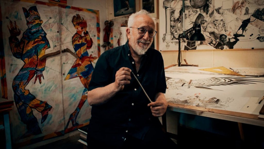 El documental se inicia con el dibujante dibujando. Se presenta como un ilustrador y le reconoce al periodismo y a la literatura el impulso y la exigencia que le inculcaron para resumir en un trabajo visual un texto o la esencia de una nota. Está en su lugar de trabajo y es una maravilla de artesanías y láminas dibujadas en su escritorio o mesa de diseño, y sobre todo, un ambiente impregnado de humanismo, no condescendiente, sino uno que explora y arremete. Su mujer, también artista, trabaja a su lado. Sienten que de alguna manera se han influenciado mutuamente, pero aquí estamos registrando solo a uno, y eso es un portal de creatividad desbordada y surrealista.