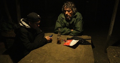 El trayecto nos muestra cómo de a poco se construye un diálogo. El padre con paciencia relata anécdotas de sus tiempos de músico e intenta motivar a su hijo a escucharlo.Sabino alterna con una relativa atención, pero se lo siente a gusto y entretenido. La película se asienta en ese diálogo y en ese viaje. Allí se construye y se recicla la relación.Papá habla de su propio padre y su ambivalencia política: «NO hablaba de política, pero se aparecía con libros o revistas de la vida en la URSS». Casi como un mandato el anteúltimo dia de su vida, el abuelo se había puesto una remera con una foto gigante de El Che: «me pareció casi ridículo, pero ahi la tengo, no se si por él, por el Che o por mi, pero viaja siempre conmigo».