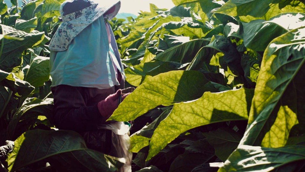 La recolección del tabaco es una tarea dura, parece una acción laboral simple, pero lejos de romantizar la idea del trabajo, es poner el cuerpo (en tiempos de robotización y mecanización) a lo que primigeniamente nos constituyó en grupos sociales, la recolección de los cultivos que constituyen nuestro alimento. El tabaco no lo es, pero como insumo de una importante industria, las hojas, serán recolectadas a mano y luego categorizadas( por su color) en una distribución que marca su calidad relativa. Todo esto expone el documental. Las protagonistas no dan la cara cuando hablan, aunque después se las pueda reconocer en imágenes, es necesario que se mantengan su anonimato.Relatan de forma casi idéntica sus deseos a poder escapar a estas tareas, si hubiera alguna posibilidad de hacerlo.Viven naturalizando la dureza del día a día, como mujeres resilientes y en un contexto que no da alternativas.