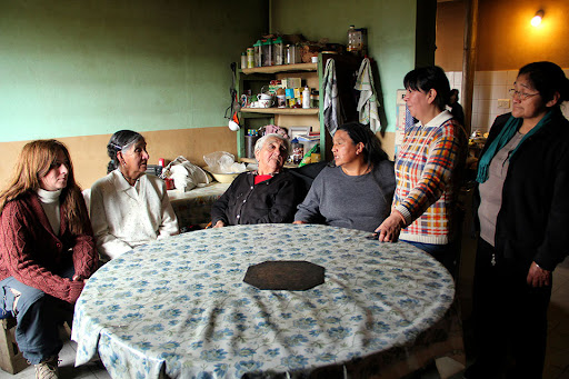 En una de las comunidades hay un mujer mayor que da charlas en la escuela sobre planta medicinales. Ella habla en su lengua originaria y en castellano. Recuerda viejas ceremonias en las que las comunidades, mucho más vivas y pobladas, se encontraban para un intercambio de vivencias y saberes. De allí las dos mujeres, que hacen este recorrido, visitan a otra anciana, que desde su telar, heredado de su madre, teje y también colabora en la subsistencia de su cultura. La última, las invita a una comida en la que todas intercambian afectos e historia. Se reconocen como pares en sus orígenes y eso es lo que la película quiere exponer.
