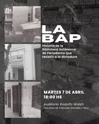 La BAP fue fundada en 1979 por alumnos de la carrera de Periodismo con el objetivo de generar un espacio de participación colectiva, de debate y formación, y en el cual se pudiera acceder a la bibliografía prohibida por el gobierno de facto. La inscribieron como una entidad de bien público y sin fines de lucro, designaron autoridades y en poco tiempo la convirtieron en un polo cultural, ya que no solo se proporcionaban libros, sino que se dictaban talleres y charlas sobre periodismo, psicología y sociología, y se realizaban peñas folklóricas y festivales multitudinarios.